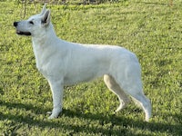 Sigi is medium coated (She carries a long coat gene), athletic and very eager.
